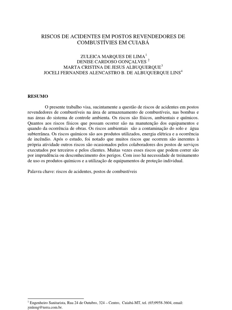 RISCOS DE ACIDENTES EM POSTOS REVENDEDORES DE COMBUSTVIES EM CUIAB
