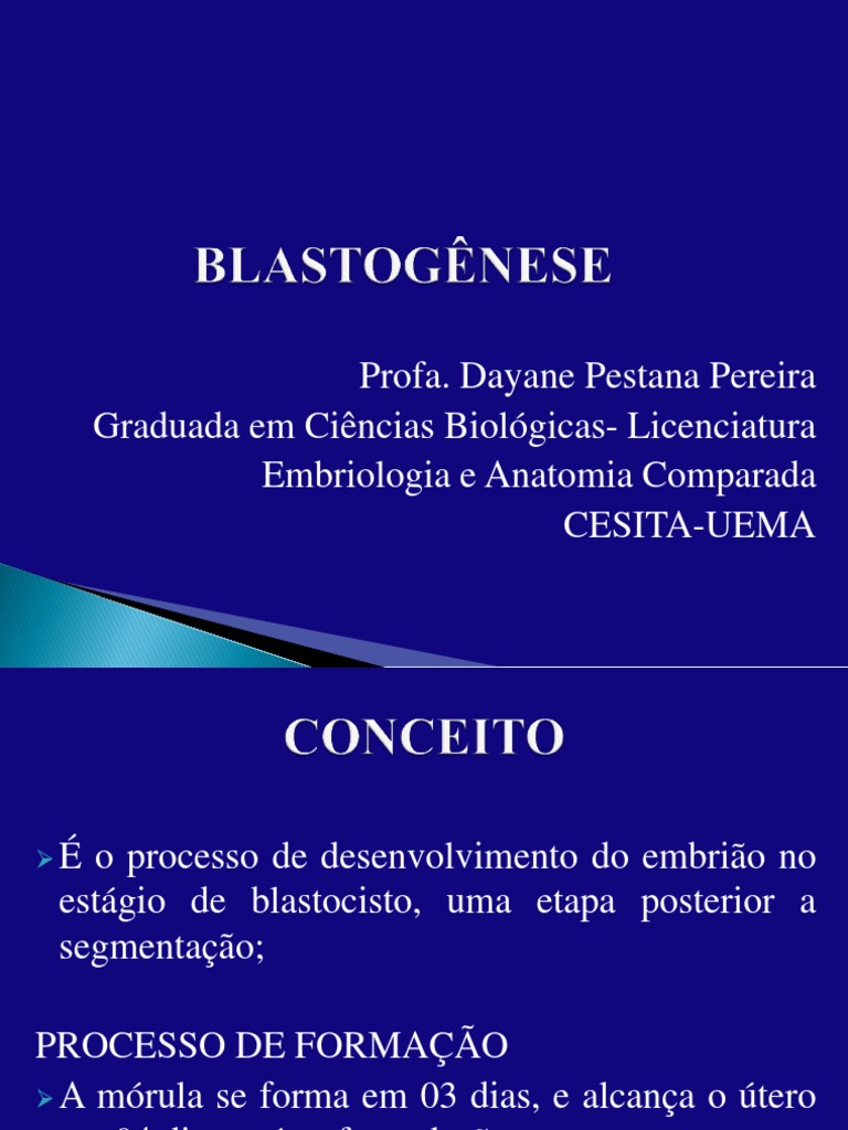 o processo de desenvolvimento do embrio no estgio de blastocisto, uma etapa posterior a segmentao;