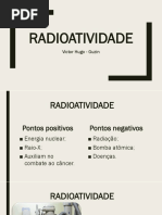 tratar-se de sucata. Foi desmontado e repassado para terceiros, gerando um rastro de contaminao, o qual afetou seriamente a sade de centenas de pessoas. Existem trs tipos de radiao: alfa, beta e gama. Becquerel, Ernest Rutherford, da Nova Zelndia, e Marie e Pierre Curie, da Frana, foram os responsveis pela sua identificao. A emisso que sofre pequeno desvio para o lado da placa negativa foi denominada emisso alfa (a), a que sofre desvio maior para o lado da placa positiva foi denominada emisso beta (b) e a que no sofre desvio foi chamada de emisso gama (g).