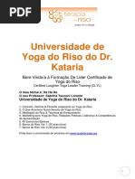 No que consiste Consiste numa atividade ldica definida como ginstica da gargalhada que pode ser praticada por todas as pessoas. As sesses feitas em grupo ou individuais, consistem numa seqncia de respirao (prnymas), alongamentos e jogos de atividade ldica ligados ao riso, inspiradas em tcnicas tradicionais do yoga e noutras fontes teraputicas complementares. Consiste em brincar com as situaes do dia-a-dia para enfrentar e ultrapassar situaes que causam estresse, mal-estar e desconforto. Ao longo das sesses as pessoas aprendem a divertirse de novo, com as situaes da vida cotidiana. Encontra-se cientificamente comprovado que o riso um ato social. Na atual sociedade individualista em que nos inserimos, estamos limitando a nossa capacidade de rir e ser espontaneamente feliz. Atravs deste ato social as pessoas encontram alvio para os seus problemas. O riso gratuito, no exclui ningum e fcil de reaprender. Benefcios Ao nvel fsico e energtico - Limpa as vias respiratrias e aquece as extremidades - Aumenta o nvel de oxignio no organismo - Liberta endorfinas (morfina natural do organismo) , proporcionando sensao de bem-estar - Melhora o sistema respiratrio e cardiovascular - Aumenta a resistncia fsica, pois o sistema imunitrio fortalecido - Melhora significante a sade em geral - Repe a energia vital de uma forma rpida Ao nvel emocional e psicolgico - Ensina a rir com naturalidade - Recupera a auto-estima, o amor prprio e a autoconfiana - Transmuta as emoes negativas em positivas. - Dilui as trs emoes mais dolorosas: o medo, a raiva e o tdio. - Liberta os sentimentos de culpa, mesmo os mais inconscientes. - Previne os estados depressivos - Baixa os nveis de estresse e combate a ansiedade - Desata os ns e desbloqueia todas as situaes no resolvidas ou mal resolvidas. - Ensina a se ver as coisas de forma mais tolervel e levar a vida mais leve e divertida. - Ajuda a desdramatizar as mudanas na vida, os conflitos e os problemas. Ao nvel social - Melhora a qualidade de vida. - Aumenta o desempenho profissional. - Aproxima as pessoas, pois ningum capaz de estar zangado junto de algum que ri. - Fortalece os laos de amizade e as relaes humanas de uma forma geral.