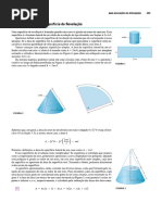 que e diferente de zero se, e s o se, os vetores ru e rv s ao independentes. Como mais podemos interpretar N ? Se ru e rv s ao independentes eles s ao os geradores do plano tangente ` a superf cie, no ponto r (uo , vo ). Parametricamente, (, ) r (uo , vo ) + ru (uo , vo ) + rv (uo , vo ) descreve este plano. Assim, N e o vetor normal ao plano tangente da superf cie, em cada ponto onde e calculado. Essa interpreta c ao j a traz boa parte do signicado de termos uma parametriza c ao regular para uma superf cie: como existe o plano tangente em cada ponto (e ele varia suavemente), esta e uma superf cie lisa , sem bicos. Exemplo: para as duas superf cies param etricas abaixo, descreva-as geometricamente e decida se s ao superf cies regulares. a) D = [0, 2 ] R, r (u, v ) = (v cos u, v sen u, v ); b) D = R (1, 2), r (u, v ) = (v cos u, v sen u, u).
