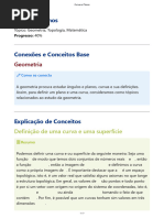 onde D R2 . Com isso, enquanto curvas s ao objetos unidimensionais, superf cies ser ao objetos bidimensionais. Dois problemas complementares s ao muito importantes: reconhecer uma superf cie que e dada parametricamente, incluindo a determina c ao de algumas propriedades geom etricas; para uma superf cie conhecida geometricamente, descrev e-la parametricamente. O primeiro e um problema de visualiza c ao , e nele um computador porde ajudar muito. J a o segundo, e um problema de parametriza c ao , no qual o talento humano ainda se sobressai ` as m aquinas. Nele, o computador pode ser usado a posteriori, para vericar se uma parametriza c ao escolhida corresponde, de fato, ` a superf cie desejada. Novamente, a escolha de uma boa 1