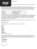 Criando a tela de Cadastro de Clientes Abra o editor de campos do cdsClientes e araste todos os campos para o Form frmCadastro. Adicione um DBNavigator da paleta (DataControls) e um Button da paleta (Standard), altere as seguintes propriedades do DbNavigator - DataSource para [Link]. Se voc rodar a aplicao vai ver que est funcionado corretamente se der algum erro revise os passos acima. Obs: E importante lembrar que tem que deixar em False a opo required do campos chaves das tabelas. Prontinho agora s falta dar [Link](0); para gravar esse dados no banco. No clientdataset os dados ficam em memria e quando voc usa o post para gravar ele e salvo na memria, os dados s so gravados no banco, com o comando applyUpdates. Ento no evento onclick do boto digite: [Link](0); [Link]; // atualiza os dados no clientdataset