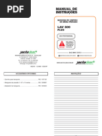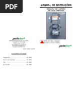 - Verifique o nvel de leo e complete, se necessrio, conforme as instrues do item "Manuteno". - Conecte a mangueira de suco. - Antes de acoplar a mangueira de alta presso, funcione a mquina vrias vezes, em curto intervalo de tempo, para eliminar o ar do sistema. Esta operao deve ser feita com a mquina ligada uma torneira ou depsito at que o jato se torne contnuo. ATENO NUNCA FUNCIONE A MQUINA SEM QUE HAJA LQUIDO CIRCULANDO PELO SISTEMA HIDRULICO DA BOMBA 08 A mquina de limpeza JACTO MOD. 12000 deve ser limpa somente com pano umedecido em gua. No jogue gua sobre a mquina para no danificar os componentes eltricos. Em regies sujeitas a baixas temperaturas, aps o uso, deve-se esgotar todo o lquido existente no cabeote da bomba a fim de evitar danos causados por congelamento da gua..