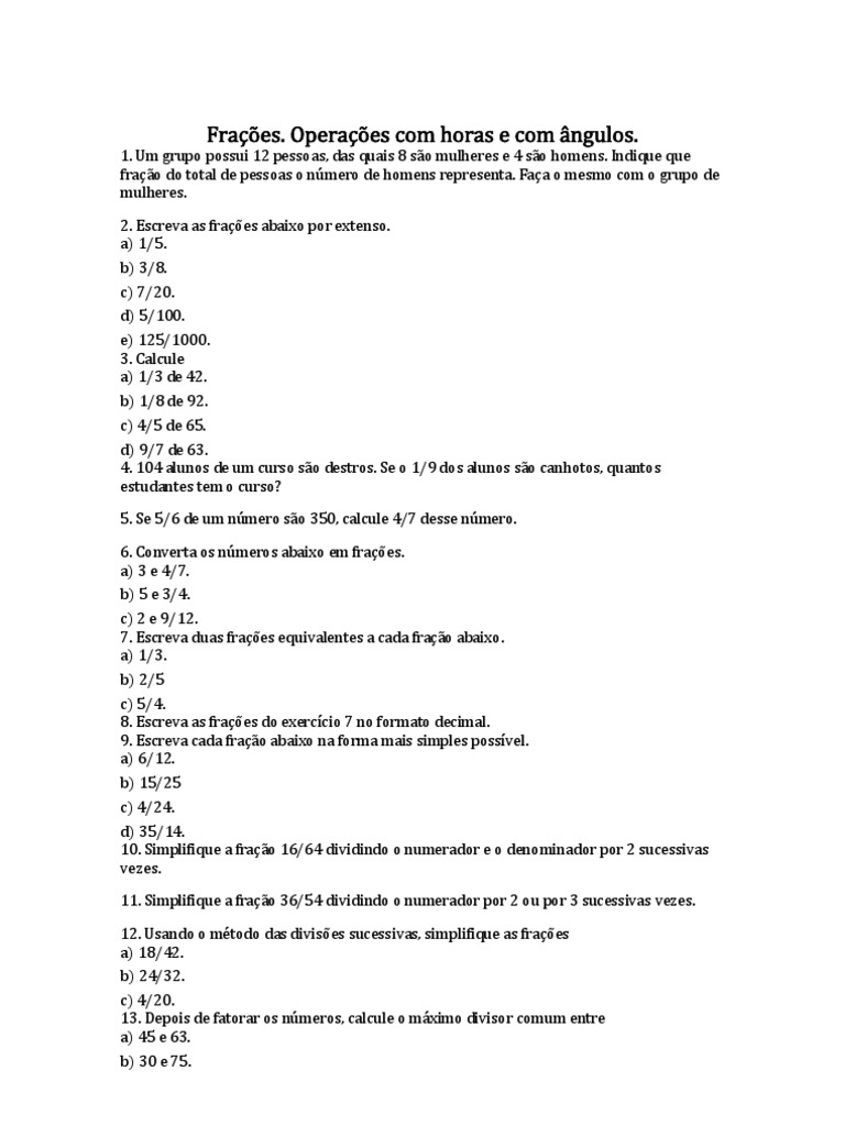 Fraes. Operaes com horas e com ngulos.