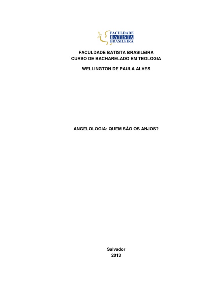 FACULDADE BATISTA BRASILEIRA CURSO DE BACHARELADO EM TEOLOGIA WELLINGTON DE PAULA ALVES