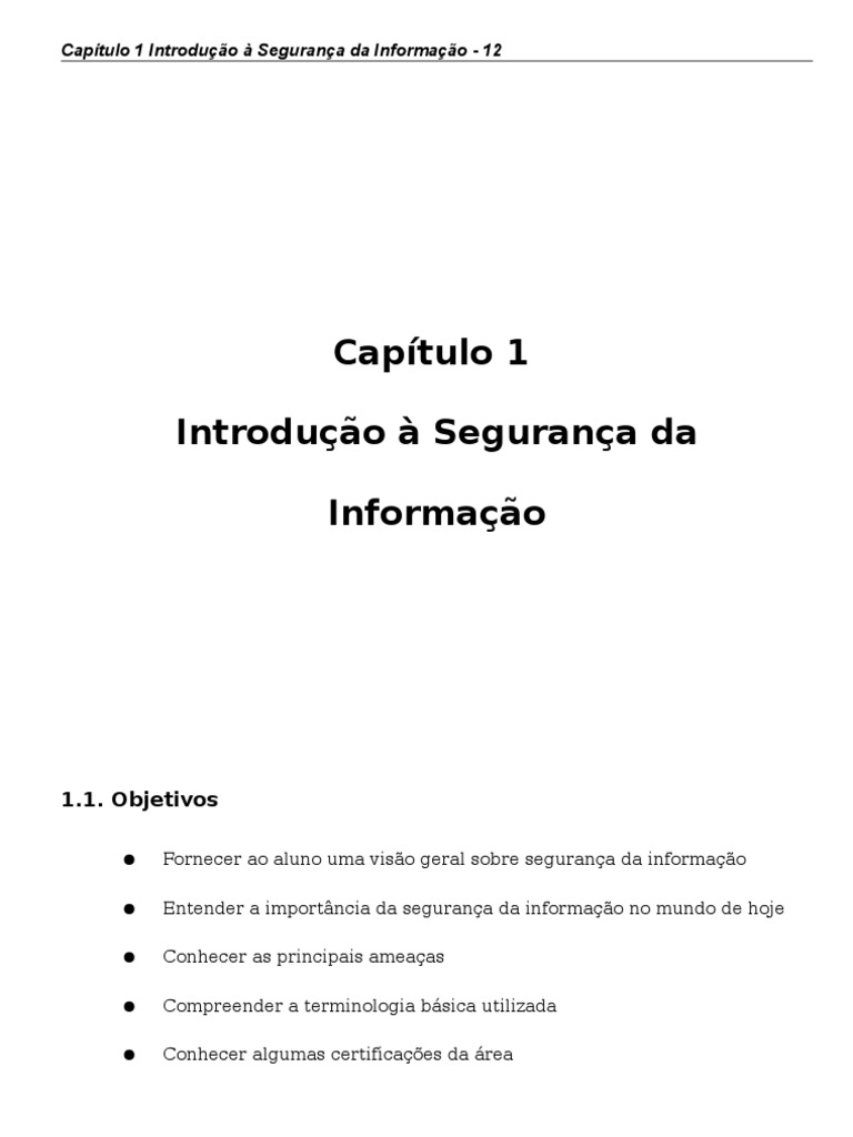 Captulo 1 Introduo Segurana da Informao