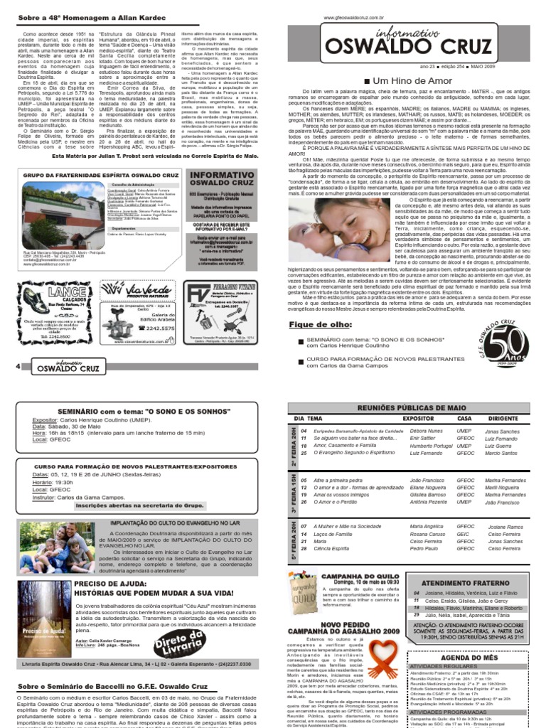 Livraria Espírita Oswaldo Cruz - Rua Alencar Lima, 34 - Lj 02 - Galeria Esperanto - (24)2237.0330 notadamente nas famílias social- ATIVIDADES REGULARES