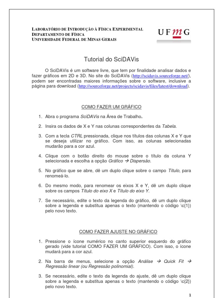 O SciDAVis um software livre, que tem por finalidade analisar dados e fazer grficos em 2D e 3D. No site do SciDAVis (http://scidavis.sourceforge.net/), podem ser encontradas maiores informaes sobre o software, inclusive a pgina para download (http://sourceforge.net/projects/scidavis/files/latest/download).