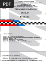 - Sufifixes: ide, -ous, - transparentes e falsos amigos, ship, -ee, -ment - Abreviaes - Sentidos de close Political/policy/politician /politics - Phrasal verbs with break formao de palavras, deduo do significado pelo contexto, uso do dicionrio, uso de imagens, ttulos, formatao para entendimento de um texto, identificar o tipo de texto e o gnero textual, aplicar