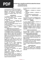 Atualizar os documentos orientadores e reguladores da vida na escola, na sequncia da institucionalizao da BE Preencher os formulrios on-line da Base de Dados RBE e do PNL Aplicar o modelo de autoavaliao da BE disponibilizado pela RBE. Analisar a informao recolhida Divulg-la e us-la como instrumento contnuo de melhoria do funcionamento da BE Definir/ redefinir prioridades, objectivos e planos de ao em funo da anlise efectuada Manter um dilogo constante com a Dir. do Agrup. partilhando dificuldades e sucessos Sugerir projetos e atividades junto da Direo, dos Depart/ grupos e docentes Promover exposies, divulgar trabalhos, promover encontros Criar condies de acolhimento e um ambiente propcio fruio do espao e ao estudo e pesquisa/uso da informao Apoiar os utilizadores no acesso e na procura e produo da informao, incentivando uma aprendizagem baseada em recursos