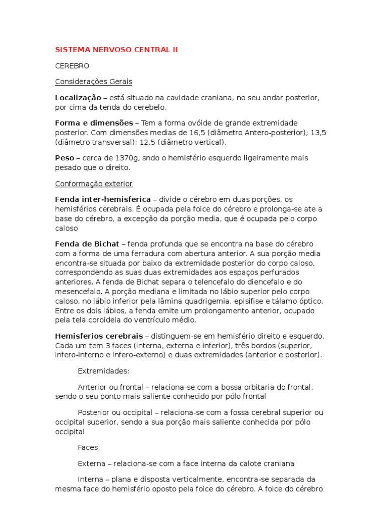 Peso – cerca de 1370g, sndo o hemisfério esquerdo ligeiramente mais