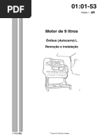 IMPORTANTE! Se os balancins foram removidos em mais de um cilindro, os parafusos de reteno do balancim devem ser completamente soltos antes de comear o ajuste. 10 Reinstale o eixo do balancim. Aperte os parafusos alternadamente de modo que eles sejam apertados em paralelo, seno um dos parafusos poder entortar. Aperte os parafusos a 105 Nm. 11 Remova o jogo de suporte para motores 99 318 com luva (manga) do suporte de cabina.