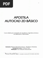 pontos ou de preciso: Temporary Tracking Point; Snap From; Snap to Endpoint; Snap to Midpoint; Snap to Intersection; Snap to Apparent Intersect; Snap to Extension; Snap to Center; Snap to Quadrant; Snap to Tangent; Snap to Perpendicular; Snap to Parallel; Snap to Insert; Snap to Node (Comando Point); Snap to Nearest; Snap to None. Object Snap Settings. Ferramentas de alinhamento: Polar Tracking e Object Snap Tracking. Posicionamento com auxlio de filtros de coordenadas (comando Circle). Exerccio: Desenho da Planta Baixa paredes cortadas. Desenho mecnico de peas laminares (exerccios). LAYERS E BLOCOS (portas, janelas, piso, coberta) Objetivos. Layers, camadas ou nveis de trabalho: Criao de layers, camadas ou nveis de trabalho. Mudando um desenho de layer. Deletando um layer. Trabalhando com as portas: Movimento da porta. Alterando a cor e a largura do arco do movimento da porta. Criando um bloco no arquivo de desenho. Criando um bloco para porta. Inserindo um bloco. Inserindo blocos porta. Ligando/desligando ou congelando/descongelando e travando/destravando um layer. Trabalhando com as janelas: Criando o layer janela baixa; desenhando uma pequena janela baixa; criando o bloco janela baixa; inserindo o bloco janela baixa; criando o layer janela alta; desenhando uma pequena janela alta; criando o bloco janela alta; inserindo o bloco janela alta. Trabalhando as linhas do piso. Trabalhando a projeo da coberta (comando Properties). Comando Lweight. Exerccios. Desenho mecnico de peas laminares e vistas (exerccios). ESCREVENDO BLOCOS. HACHURAS Objetivos. Escrevendo blocos: Criao da pasta Biblioteca; Comando Wblock. Comandos Ellipse; Polyline e Spline. Exerccios: Desenho da seta indicativa do sentido de corte; desenhando um lavatrio (comando Ray); desenhando a bancada do lavatrio (Comando Construction Line); desenhando a torneira. Hachuras: Comando Hatch. Exerccios: Representao, na planta baixa, dos pisos revestidos com cermica. Desenho mecnico de peas laminares e vistas (exerccios). CORTE TRANSVERSAL Objetivos. Desenhando um corte transversal: Criando layers; criando hachuras. Exerccios: Desenhar o corte transversal da edificao da planta baixa trabalhada: Sugesto para o desenho das paredes, fundao... (comandos: Ray, Construction Line e Break); sugesto para o desenho do telhado (comando Array rectangular). Desenho mecnico (exerccios). DESENHO MECNICO Desenho mecnico: Desenho de peas, vistas e