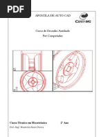 cortes, utilizando os comandos estudados. Comando Polygon. Comando Polar Array. ESCREVENDO TEXTOS Objetivos. Estilos de texto: Configurando estilos de texto; a escala do desenho e a altura da letra ou do texto; definindo um estilo de texto para as etiquetas; definido um estilo de texto para os ttulos. Texto com uma linha (Single Line Text): Ttulos; exerccio; etiquetas; movendo o texto; dividindo as linhas interceptadas dos cmodos; editando texto de uma linha; justificao do texto. Clculo da rea do cmodo. Texto com diversas linhas (Multiline Text): Escrevendo texto com diversas linhas; editando o texto com diversas linhas; resumo dos recursos do Multiline Text Editor; alterao da escala de impresso e a altura do texto. Exerccios: Escrever os ttulos dos desenhos (planta baixa; cortes transversal e longitudinal); etiquetar a planta baixa. DESENHANDO OS FORMATOS DA FOLHA DE PAPEL Objetivos. Desenho dos formatos A4; A3; A2; A1 e A0, com as unidades em mm. Gerao de Wblocks para cada formato. COTANDO DESENHOS Objetivos. Comando Dimension: Linear Dimension; Aligned Dimension; Ordinate Dimension; Radius Dimension; Diameter Dimension; Angular Dimension; Quick Dimension; Baseline Dimension; Continue Dimension; Quick Leader; Tolerance; Center Mark; Dimension Edit; Dimension Text Edit; Dimension Update; Dim Style Control; Dimension Style. Configurando estilos de cota ou de dimensionamento: Interpretando uma cota; Dimension Style Manager; gerando um novo estilo de cota; configurando linhas e setas ( dimension lines, extension lines, arrowheads e center marks); configurando texto (text appearance, text placement e text alignment); configurando os ajustes (fit options, text placement; scale for dimension features e fine tuning); primary units (linear dimensions, measurement scale e zero suppression); alternate units; tolerances tolerance format. Exemplos de configurao de estilos de cota. Exerccios: Dimensionamento ou cotagem da planta baixa e dos cortes trabalhados. Cotagem de desenhos mecnicos. LEGENDA E ATRIBUTOS Objetivos. Construo da legenda. Atributos: Introduo; desenho para a construo do bloco; gerando atributos; definindo atributos; gerando Wblock com atributos; inserindo blocos com atributos; editando blocos com atributos. Exerccios: Criao de Wblocks com atributos para etiquetas dos cmodos, ttulos dos desenhos, representao de nvel de piso; cotas de janelas e portas. IMPRESSO DO DESENHO Objetivos. Introduo. Impresso (caixas de dilogo