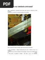 Depois que a cola secar, junte os pedaos e bata com um martelo de borracha ou madeira, para eliminar qualquer bolha que tenha ficado entre eles. Com uma lmina (aqui eu desaconselho o uso de estilete, pois o mesmo pode quebrar e se tornar perigoso) v desbastando, com a lmina se deslocando no sentido contrrio aos seus dedos (por motivos bvios) at formar uma cunha. Termine com uma lixa
