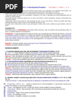 II OBSTCULOS QUE IMPEDEM AS RESPOSTAS DE DEUS S ORAES: 1 no pedir (Jo. 16:24); 2 pedir sem f (Tg. 1:5-8); 3 pedir com motivos errados (Tg. 4:3); 5 existir pecados no confessados (Tg. 5:16; I Jo. 59:1-2). A falta de perdo impede a orao de ser respondida (Mt. 6:14-15); 6 orar para agradar pessoas (Mt. 6:5-8); 7 ansiedade (Fp. 4:6); 8 problemas no resolvidos no relacionamento familiar (I Pe. 3:7); 9 desobedincia Palavra de Deus (Tg. 1:23-25); 10 ingratido (Lc. 17:18-19; Hb. 11:6). III SEGREDO DA ORAO COMO ORAR? 1 orar em nome de Jesus (Jo. 14:13,4); 2 ser especfico (Fp. 1:3-11 e 4:6). Devemos ter um objetivo a ser alcanado um alvo claro; 3 ser perseverante (Lc. 11:5-8); 4 orar com sinceridade(Mt. 6:5-8); 5 no usar repeties vazias (Mt. 6:5-8). IV TIPOS DA ORAO: 1. Louvor a expresso de puro amor a Deus, atravs do reconhecimento de seus atributos (Hb. 13:15); 2. Ao de Graas o reconhecimento, cheio de gratido, de que Deus est agindo em nossas vidas (I Ts. 5:18); um agradecimento espontneo e sincero pelo que o Senhor j fez em nossas vidas; 3. Confisso o momento em que oramos confessamos pecados especficos a Deus e buscamos o seu perdo (I Jo. 1:9); 4. Intercesso a orao em favor de outras pessoas. levar a Deus as necessidades de outras pessoas (I Tm. 2:1); 5. Petio e Splicas consiste em apresentarmos nossas pedidos pessoais a Deus (Jo. 16:24; Fil. 4:6). o oposto da orao de adorao. Na petio, buscamos receber, na adorao entregamos algo a Deus. 6. Adorao o oferecimento de todo o nosso ser a Deus (Jo. 4:23-24). Neste tipo de orao, buscamos a Deus pelo que Ele , nos entregamos totalmente a Ele, adorando sua presena; 7. Ordenao orar proclamando a palavra escrita, confrontando o reino das trevas (Mt. 4:10; Ef. 6:17).