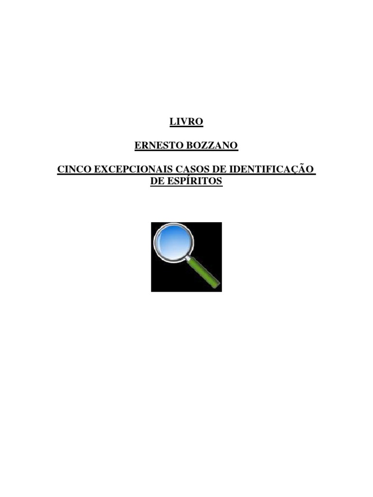 LIVRO ERNESTO BOZZANO CINCO EXCEPCIONAIS CASOS DE IDENTIFICAÇÃO DE ESPÍRITOS