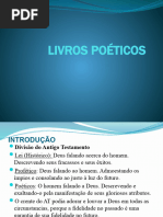 O grande poder de Deus(38:1-41:34). Este texto registra as palavras de Deus situao de J,mas no se constituem numa resposta direta como J desejava. Deus, em suas palavras, faz J ver que existem muitas coisas que fogem ao controle de J e que ele no tem conhecimento de todas as coisas, preparando-o para entender que existem coisas que Deus faz que fogem ao nosso entendimento, mas nem por isso so coisas feitas sob condies suspeitas. Deus perfeito em tudo o que faz! J tem sua vida reconstruda( 42:1-17). J renasceu das cinzas e do p a partir do momento em que foi aceito por Deus porque estava orando por seus amigos. Recebeu tudo em dobro, mas o mais importante foi sua restaurao comunho com Deus e a reaproximao com seus parentes e amigos e a restaurao de sua famlia. H algo importante a se destacar: nem toda histria de sofrimento termina como a de J, mas temos a segurana de que Deus sempre est conosco, seja qual for o resultado. O LIVRO DE SALMOS O livro de Salmos o livro mais amado e apreciado do Antigo Testamento. Era o livro de hinos, oraes e leituras litrgicas usado pelos antigos israelitas em seus cultos, dentro e fora do templo. Por muito tempo pensou-se que quase todos esses poemas tivessem sido usados em Israel desde o incio de sua histria, a maioria tendo sido escrita por Davi. Todavia, no perodo aproximado entre 1880 e 1950 muitos estudiosos, especialmente aqueles influenciados pelo racionalismo europeu, chegavam a datar cada vez mais os salmos nos perodos exlico, psexlico e macabeu, isto , de 586 a 150 a.C. Contudo em aproximadamente 1950, com a obra de Hermann Gunkel no campo da crtica de formas, iniciou-se uma reviravolta no mesmo ambiente acadmico que tem levado os comentaristas concluso de que a maioria dos salmos prexlica e era usada no templo de Salomo. Isto no nega que a forma final do livro de Salmos representa uma reviso feita no exlio e aps o exlio. bom notar que o livro de Salmos deve ser estudado em conjunto com Levtico se quisermos entender os aspectos de culto sob o prisma do sistema sacrifical mosaico. Levtico reflete a forma bsica daquele culto, enquanto Salmos reflete o corao dele por indicar o sentido, as atitudes e a inteno do culto de Israel(14) tanto no templo como nos lares. 1. O seu lugar nos cnones.