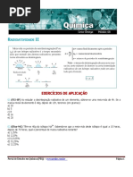 Dados: Ai/Af = 2X, x = nmero de meias-vidas e log 2 = 0,3 A radioatividade nessa amostra (Af) ser de cerca de 1 milsimo da inicial (Ai), aps: a) 15 dias. b) 30 dias. c) 2 meses. d) 4 meses. e) 6 meses. 23 (UERJ-RJ) O istopo rdio-226, utilizado em tratamentos medicinais, um alfa-emissor com tempo de meia-vida de 3,8 dias. Para estudar a decomposio do rdio-226, realizou-se um experimento em que uma amostra slida de 1 mol dessa substncia foi introduzida em uma ampola com capacidade de 8,2 L. Nessa ampola, a presso interna inicial era igual a 1,5 atm e a temperatura, constante em todo o experimento, igual a 27C. Considere as informaes a seguir: - o decaimento do rdio-226 produz radnio-222 e hlio-4; - os gases hlio e radnio tm comportamento ideal; - no h reao entre os gases no interior da ampola. Calcule a presso, em atm, no interior da ampola, 7,6 dias aps o incio do experimento.