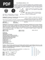 t(1/2) = 12,4 anos. [3He] = 3 [3H], ento: ([3He]/[ 3H]) = 3 Idade da amostra = t(1/2) ([3He]/[ 3H]) 0,7 Idade da amostra = 12,4 3 0,7 Idade da amostra = 26,04 anos = 26 anos. 30- D 31- B 32- C 33- D 34- C 35- D 36- a) X = 36Kr93 e Y = 35Br90. b) O tempo necessrio para reduzir uma determinada massa do 92U235 a 1/4 ser de 9,0 bilhes de anos. 37- C 38- A 39- D 40- a) Relao entre as massas = 15. b) Co3+; 3d6. 41- a) 27Co59 + 0n1 27Co60 27Co60 00 + -1 0 + 28Ni60 b) p = 5 anos (perodo de semidesintegrao) 15 anos = 3p p p p 100 g 50 g 25 g 12,5 g Aps 15 anos teremos 12,5 g desse istopo. 42-a) O resultado 7 foi obtido pela razo 7/1. A quantidade total de istopos 1 + 7 = 8. p p p 8 4 2 1 (p = meia vida). Tempo = 3p = 3 x 1,28 x 109 = 3,84 x 109 anos. b) 19K40 -1 0 + 20Ca40 43- B