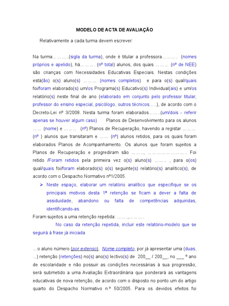 MODELO DE ACTA DE AVALIAÇÃO