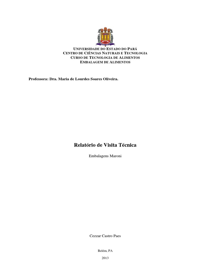 1.1. Empresa visitada A empresa visitada tem o nome de Maroni S/A e est h mais de 30 anos no mercado de embalagens para alimentos e embalagens plsticas em geral, possui grandes clientes dentro e fora do estado do Par. Sua unidade fabril est sediada no endereo Passagem s de Ouro, 1, Levilandia Ananindeua - PA - CEP: 67015-760 com o seguinte telefone para contato +55 (91) 32451657.