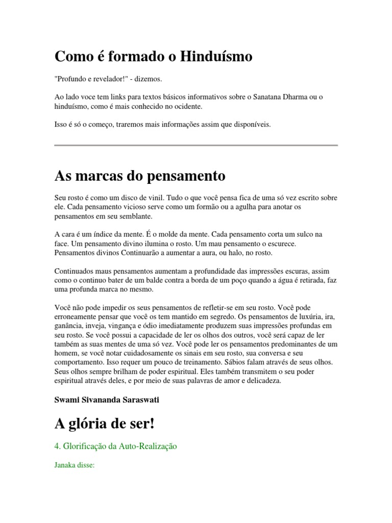 "Profundo e revelador!" - dizemos. Ao lado voce tem links para textos bsicos informativos sobre o Sanatana Dharma ou o hindusmo, como mais conhecido no ocidente. Isso s o comeo, traremos mais informaes assim que disponveis.