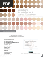 Queratose ! Aumento da espessura da pele, que se torna dura, inelstica, de superfcie spera e cor amarelada. Liquenicao ! Espessamento da pele, com acentuao dos sulcos e da cor normal da pele, congurando um aspecto quadriculado da superfcie cutnea. Edema ! Aumento da espessura da pele, depressvel decorrente da presena de plasma na derme ou hipoderme. Inltrao ! Aumento da espessura e consistncia da pele, com limites imprecisos, tornando menos evidentes os sulcos normais. Esclerose ! Alterao de espessura da pele, que se torna coricea e impreguevel quando pinada com os dedos. Pode acompanhar-se de hipo ou hipercromia e decorre da presena de brose com aumento do colgeno drmico. Atroa ! Diminuio da espessura da pele, que se torna adelgaada.