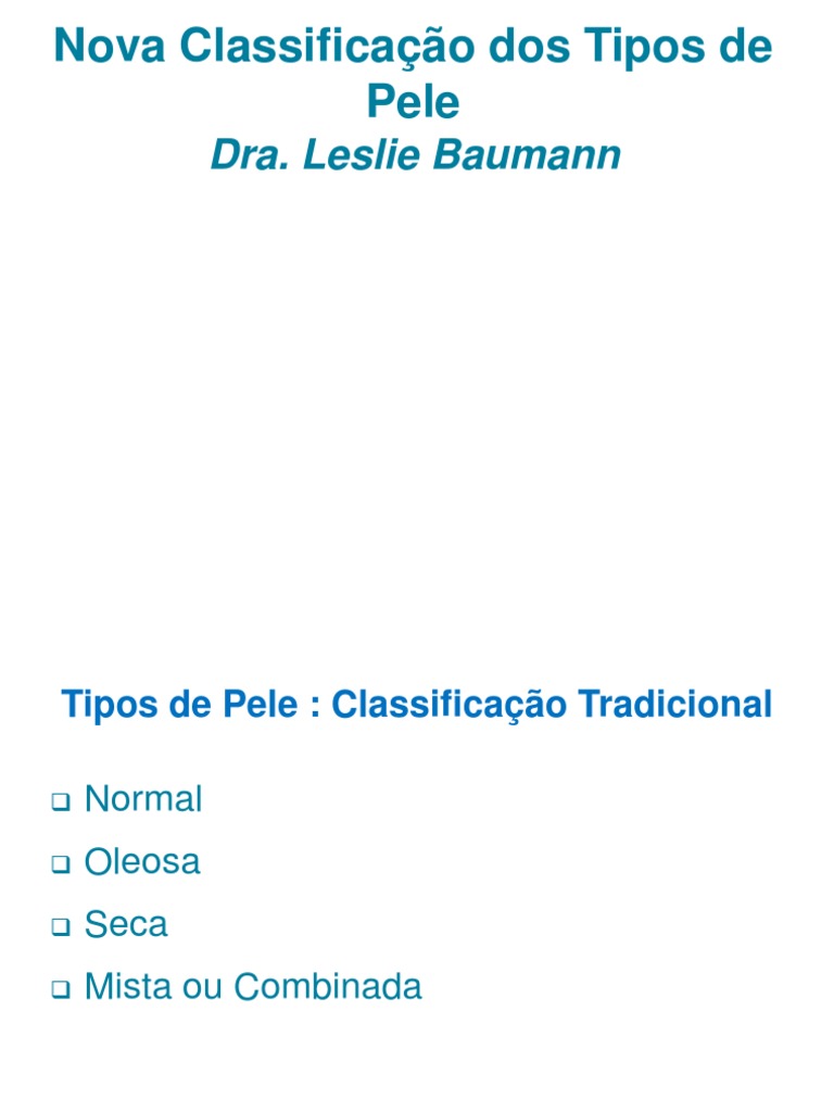 Nova Classificao dos Tipos de Pele Dra. Leslie Baumann Fatores avaliados: