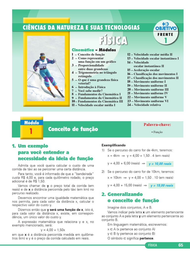 1 Conceito de funo 2 Como representar uma funo em um grfico 3 Proporcionalidade entre duas grandezas 4 Trigonometria no tringulo retngulo 5 O que uma grandeza fsica vetorial? 6 Introduo Fsica 7 Voc sabe medir? 8 Fundamentos da Cinemtica I 9 Fundamentos da Cinemtica II 10 Fundamentos da Cinemtica III 11 Velocidade escalar mdia I 12 Velocidade escalar mdia II 13 Velocidade escalar instantnea I 14 Velocidade escalar instantnea II 15 Acelerao escalar 16 Classificao dos movimentos I 17 Classificao dos movimentos II 18 Movimento uniforme I 19 Movimento uniforme II 20 Movimento uniforme III 21 Movimento uniforme IV 22 Movimento uniforme V 23 Movimento uniforme VI 24 Velocidade relativa