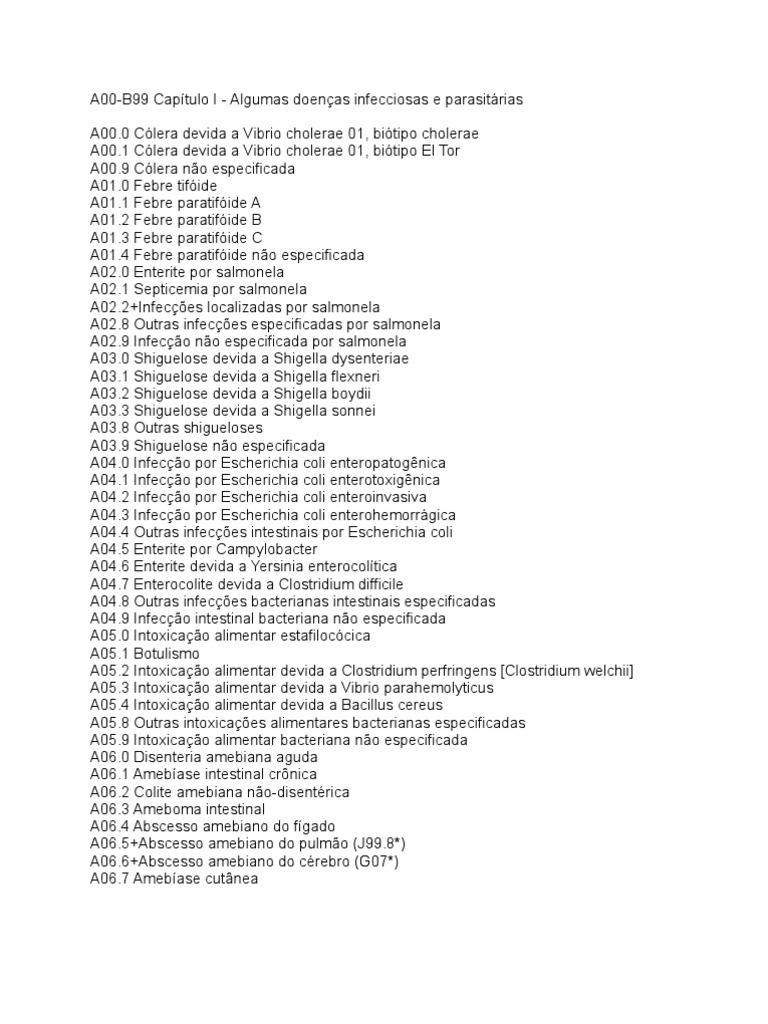 A00-B99 Capítulo I - Algumas doenças infecciosas e parasitárias