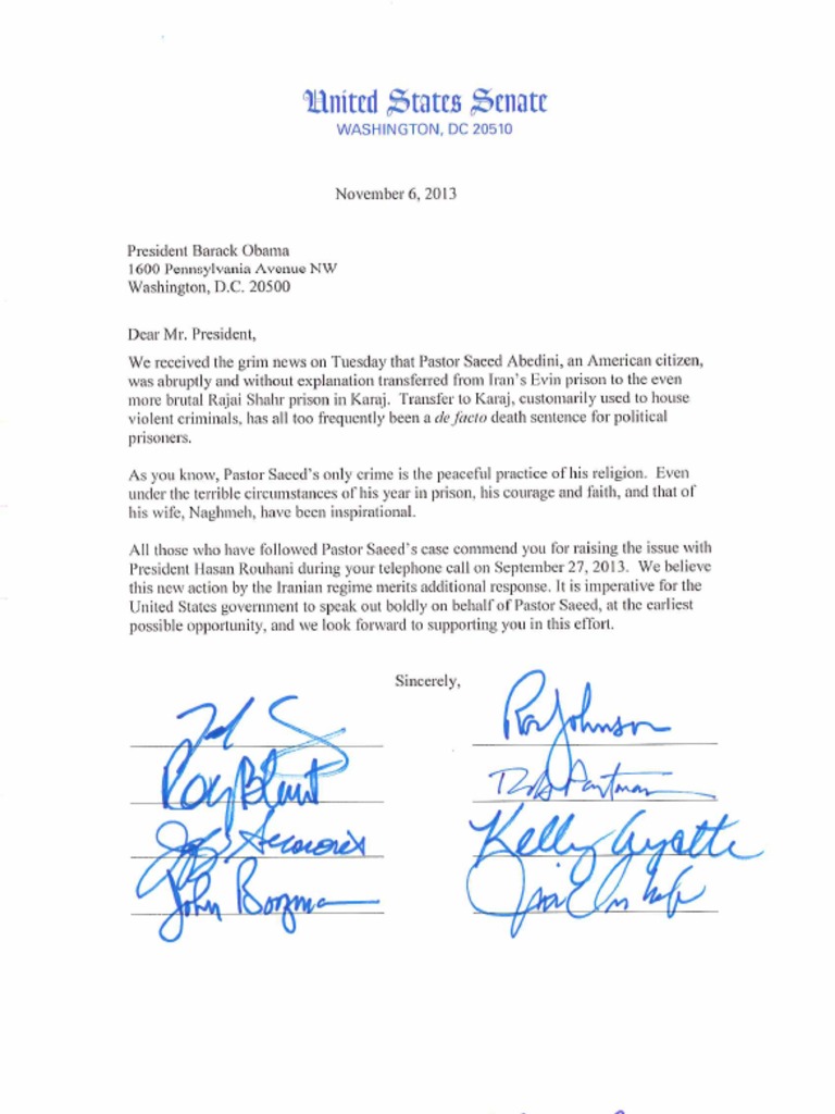 Bipartisan Letter to President Obama Urging Strong U.S. Action to Liberate Pastor Abedini