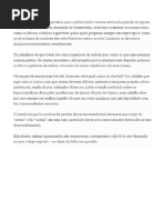 E POR FALAR EM CITAES Havia na minha terra um orador popular que terminava assim os seus discursos: "P ois, como disse Ruy Barbosa..." e l vinha pra cima da gente com uma frase que ele tirava do prprio bestunto. claro que todo mundo aplaudia. APROXIMAES Clair de lune, chiaro de luna, claro de luna... jamais os franceses, os italiano s e os espanhis sabero mesmo o que seja o luar, que ns bebemos de um trago numa pal avra s. O TEMPO E A VIDA No se devia permitir nos relgios de parede esses ponteiros que marcam os segundos: eles nos envelhecem muito mais que o ponteiro das horas. SANGUE E AREIA O mais revoltante nas touradas que os touros no so aplaudidos quando saem vencedor es. DOS CADERNOS DE DRCULA Quando a gente aperta o umbigo das crianas mortas, suas alminhas se espremem de r iso l no Cu. O DIABO E A CRIANA Um dia o Diabo viu uma criana fazendo com o dedo um buraco na areia e perguntou-l he que diabo de coisa estaria fazendo. U! no vs? Estou fazendo com o dedo um buraco na areia! espantou-se a criana. Pobre Diabo! O seu mal que ele jamais compreender que uma coisa possa ser feita s em segundas intenes. OS INTERMEDIRIOS No me ajeito com os padres, os crticos e os canudinhos de refresco... No h nada que substitua o sabor da comunicao direta. ZOOLOGIA O hipoptamo um bruto sapato afogado. DILOGO NO CU Mas aquelas mocinhas l embaixo, naquela sala grande, no esto rezando? No, meu santo, esto mastigando chiclete.