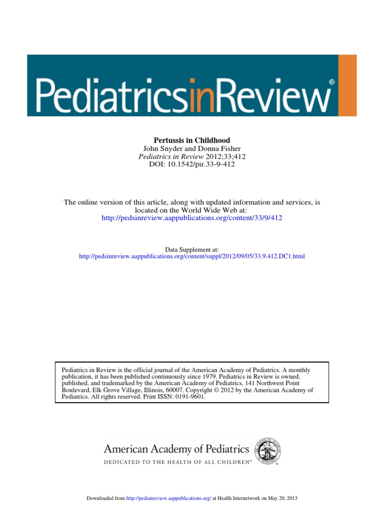 Pertussis in Childhood John Snyder and Donna Fisher Pediatrics in Review 2012;33;412 DOI: 10.1542/pir.33-9-412