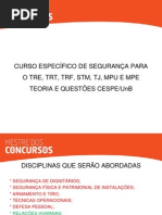 SEGURANA DE DIGNITRIO Tcnicas, Tticas e Operacionalizao Objeto e modus operandi ANLISE DE RISCOS PLANEJAMENTO DE CONTIGNCIAS SEGURANA CORPORATIVA ESTRATGICA NOES DO PLANEJAMENTO DE SEGURANA Conceito, Princpios, Nveis, Metodologia Modularidade e faseamento Fases do planejamento