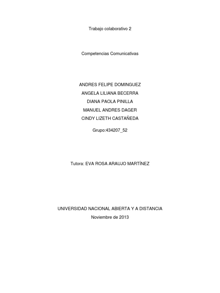 ANDRES FELIPE DOMINGUEZ ANGELA LILIANA BECERRA DIANA PAOLA PINILLA MANUEL ANDRES DAGER CINDY LIZETH CASTAÑEDA Grupo:434207_52