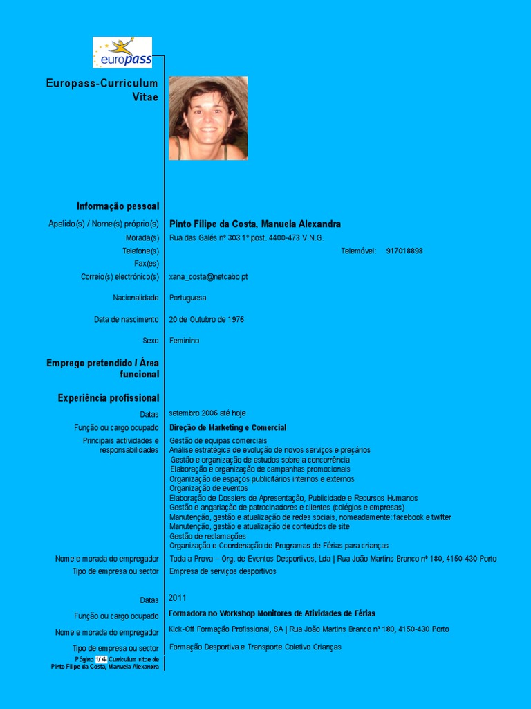 Pgina 1/ 4- Curriculum vitae de Pinto Filipe da Costa, Manuela Alexandra