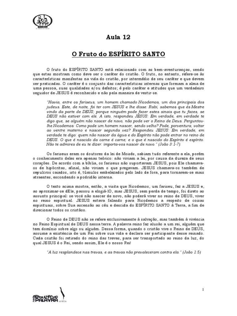 Espírito Santo que você pôde perceber no seu dia-a-dia. Lembre-se que o fruto é um só, e