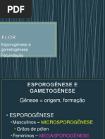 3 -flores imperfeitas ou unissexuadas: contm apenas os estames ou os carpelos Por outro lado, a planta considerada: -Hermafrodita quando todas as suas flores so hermafroditas, como em leguminosas, algodo, arroz, caf. -Monica: quando apresenta flores masculinas e femininas separadas na mesma planta (milho) -Diica: quando flores unissexuadas situam-se em plantas diferentes (mamo) FORMAO DO GRO DE PLEN (Microsporognese) Os gros de plen so formados nas anteras. Estas so expanses dilatadas do estame, constitudas por duas tecas, cada uma com dois sacos polnicos, onde so produzidos os gros de plen. Cada gro de plen maduro constitudo por uma parede celular dupla (exina e intina), um ncleo vegetativo e pelo menos um ncleo reprodutivo, todos haplides (Figura 1). Nas angiospermas, o gro de plen geralmente contm uma clula vegetativa e outra reprodutiva. A diviso desta (reprodutiva) normalmente se processa no citoplasma do tubo polnico, dando origem a dois ncleos reprodutivos haplides: os gametas masculinos.