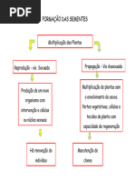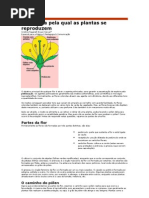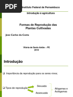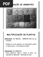 2 A propagao (multiplicao assexuada) deve ser utilizada nos seguintes casos: -para cultivares que no produzem sementes; -a espcie produz pequenas quantidades de sementes, sob condies especiais. Exemplo: cana-de-acar (a viabilidade do plen somente mantida quando o florescimento ocorre em regies midas e quentes, como as litorneas do Brasil); -a utilizao de mudas permite abreviar o perodo necessrio para a formao da lavoura (caf e vrias frutferas); -as sementes apresentam baixa longevidade (seringueira) MULTIPLICAO SEXUADA (Reproduo de Plantas) Constitui a reproduo propriamente dita, pois envolve o desenvolvimento de um novo organismo, a partir de um indivduo que alcanou a maturidade genitiva, com a interveno de clulas ou ncleos sexuais. Ocorre a unio de gametas e a variabilidade gentica. Em geral, mais fcil, mais rpida e de baixo custo. 2)FORMAO DA SEME TE O incio do processo de reproduo de plantas comea com a transio da fase vegetativa para a reprodutiva. Esse redirecionamento do comportamento da planta depende de sua capacidade de percepo a condies especficas do ambiente e a conseqente resposta a esses sinais, traduzida pelas alteraes em processos fisiolgicos. INDUO FLORAL A induo floral uma alterao fisiolgica provocada por estmulo externo, conduzindo ao desenvolvimento de primrdios reprodutivos (precursores do desenvolvimento de frutos e sementes). A induo floral pode preceder a emisso de flores em vrios dias, semanas ou meses. O florescimento pode ser induzido por condies especficas de: -fotoperodo, caracterizando as plantas de dias curtos e de dias longos; -temperaturas relativamente baixas (5C a 10C), durante perodo varivel (dez a cem dias), para que o ciclo seja alterado em direo s etapas reprodutivas, como ocorre em cebola e cenoura: no primeiro ciclo, so produzidos rgos vegetativos (bulbos e razes, respectivamente); no segundo, aps a vernalizao e induo floral, essas plantas formam sementes; -disponibilidade de gua - induo do florescimento ocorre alguns dias aps a ocorrncia de chuvas. Ex: caf FLORESCIMENTO A flor um ramo com crescimento limitado, geralmente originado nas axilas das folhas, cujas partes so adaptadas e modificadas para a formao e o desenvolvimento de clulas reprodutivas e o desenvolvimento do fruto e da semente. As flores podem ser classificadas, de acordo com suas partes componentes, em: -flores completas: apresentam clice (spalas), corola (ptalas), androceu (conjunto de estames) e gineceu (conjunto de carpelos, tambm conhecido por pistilo). Os estames so constitudos por filete e antera. Os carpelos so formados pelo estigma, estilete e ovrio. -flores incompletas: quando pelo menos uma dessas partes ausente -flores perfeitas ou hermafroditas: apresentam estames e carpelos na mesma flor