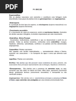 3)PARTES DA SEME TE MADURA a) TEGUMENTO (cobertura, envoltrio ou casca) b) ENDOSPERMA (?): pode haver ou no, dependendo da espcie. As sementes maduras que apresentam endosperma so conhecidas como endospermticas ou albuminosas; nesse caso, as reservas armazenadas durante a maturao destinam-se nutrio do embrio durante a germinao. Exemplo: gramneas. Existem, porm, sementes sem endosperma, conhecidas como exalbuminosas: o endosperma foi consumido durante a formao do embrio. Exemplo: maioria das dicotiledneas. c) EMBRIO constitudo por: c.1) cotildone(s) dicotiledneas: dois cotildones; fornecem reservas ao eixo embrionrio monocotiledneas: um cotildone simples (chamado de escutelo); alm da proteo conferido ao eixo embrionrio, mantm-se como estrutura absorvedora de reservas do endosperma, transferindo-as ao eixo embrionrio. c.2) eixo embrionrio: composto por plmula, hipoctilo e radcula.