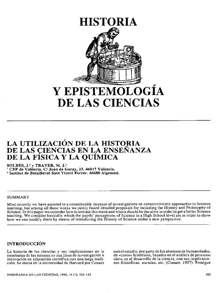 La historia de las ciencias y sus implicaciones en la enseanza de las mismas es una lnea de investigacin e innovacin en educacin cientfica con una larga tradicin. Se inicia en la universidad de Harvard por Conant