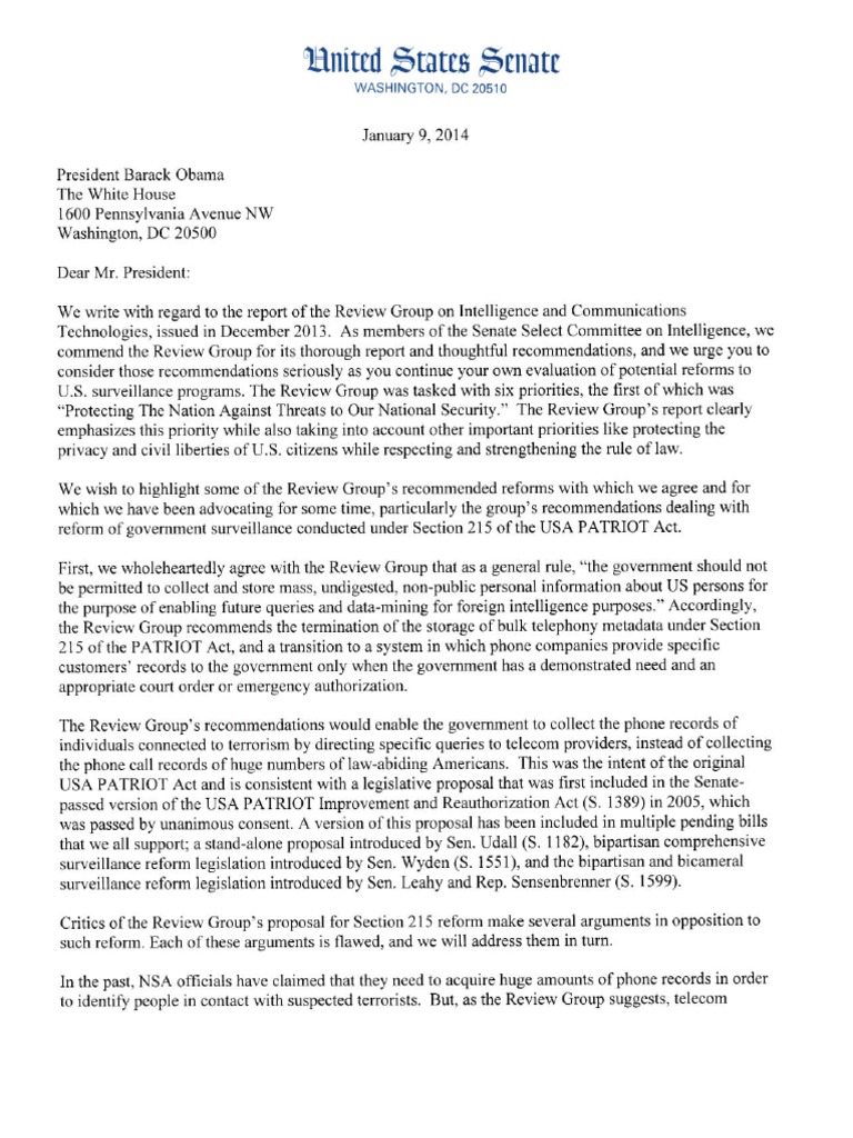 U.S. Senators Mark Udall (D-Colo.), Ron Wyden (D-Ore.) and Martin Heinrich (D-N.M.) — all members of the U.S. Senate Select Committee on Intelligence — in a letter pressed the White House to…Descrição completa