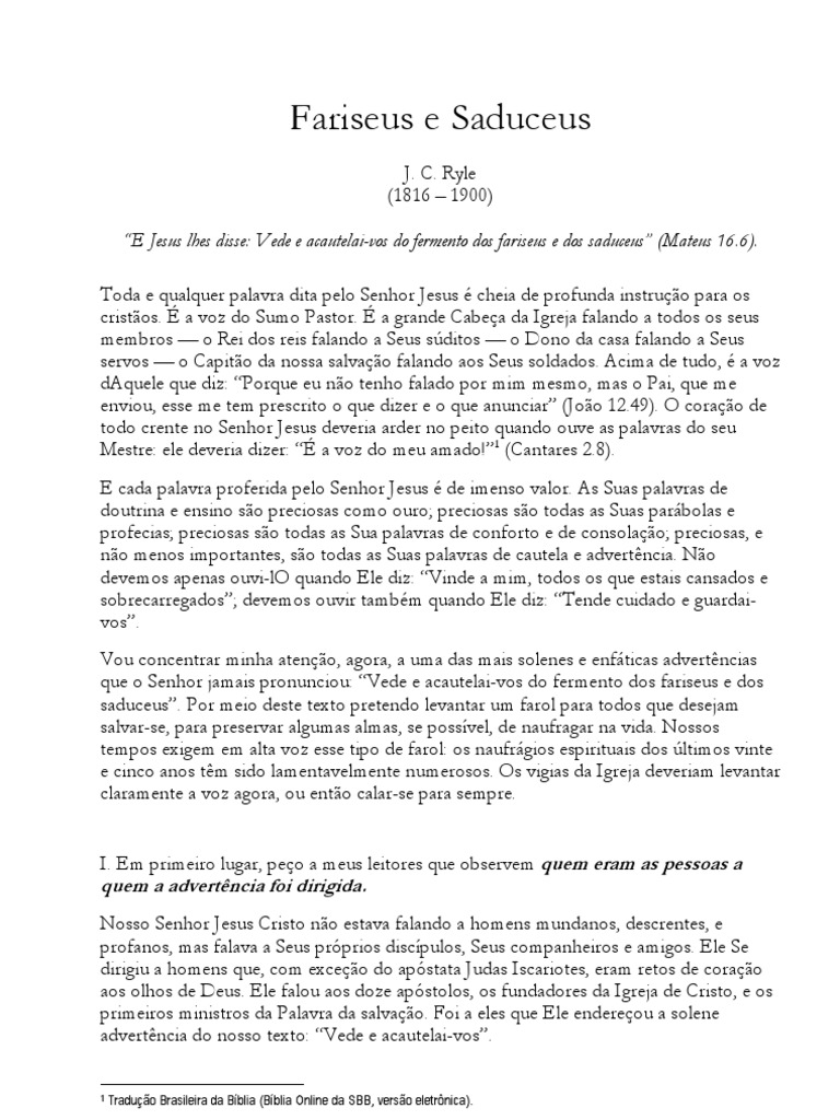 fariseus e dos saduceus, e será guiado à vida eterna. Comece a fazer isso sem demora. É