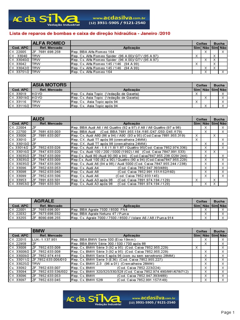 Rep. Cx. Agrale 7000 / 7500 / 8500 / Volare A6 / A8 / Puma 914