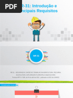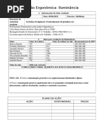 madeira ou metlica1 e as telhas poder*o ser de barro ou de fibrocimento. (578.67:98 ; I5) . ever*o ser colocadas telhas translHcidas1 para melhorar a ilumina0*o natural1 e telhas de ventila0*o de 8 (3uatro) em 8 (3uatro) metros. (578.67897 ; I5) As =anelas das instala0,es sanitrias dever*o ter cai2ilhos fi2os1 inclinados de 8F (3uarenta e cinco graus)1 com vidros inclinados de 8F (3uarenta e cinco graus)1 incolores e translHcidos1 totali<ando uma rea correspondente a 5;B (um oitavo) da rea do piso. (578.67F96 ; I5) A parte inferior do cai2ilho dever se situar1 no m-nimo1 + altura de 51F6m (um metro e cin3Ienta cent-metros) a partir do piso. (578.67?9C ; I5) &s locais destinados +s instala0,es sanitrias ser*o providos de uma rede de ilumina0*o1 cu=a fia0*o dever ser protegida por eletrodutos. (578.67@9@ ; I7) #om o ob=etivo de manter um iluminamento m-nimo de 566 (cem) lu21 dever*o ser instaladas lAmpadas incandescentes de 566 J;B166 m7 de rea com p9direito de :166m (trs metros) m2imo1 ou outro tipo de luminria 3ue produ<a o mesmo efeito. (578.67B9F ; I7) A rede hidrulica ser abastecida por cai2a dDgua elevada1 a 3ual dever ter altura suficiente para permitir bom funcionamento nas tomadas de gua e contar com reserva para combate a incndio de acordo com posturas locais. (578.67C9: ; I5) "er*o previstos ?6 (sessenta) litros dirios de gua por trabalhador para o consumo nas instala0,es sanitrias. (578.6:69@ ; I5) As instala0,es sanitrias dever*o dispor de gua canali<ada e esgotos ligados + rede geral ou + fossa sptica1 com interposi0*o de sif,es hidrulicos. (578.6:59F ; I5) N*o poder*o se comunicar diretamente com os locais de trabalho nem com os locais destinados +s refei0,es. (578.[Link] ; I5) "er*o mantidas em estado de asseio e higiene. (578.6::95 ; I5) 78.5.7F.:. No caso de se situarem fora do corpo do estabelecimento1 a comunica0*o com os locais de trabalho deve fa<er9se por passagens cobertas. (578.6:896 ; I5) &s gabinetes sanitrios dever*oE a) ser instalados em compartimentos individuais1 separados> (578.6:F9B ; I5) b) ser ventilados para o e2terior> (578.6:?9? ; I5) c) ter paredes divis/rias com altura m-nima de 7156m (dois metros e de< cent-metros) e seu bordo inferior n*o poder situar9se a mais de 615Fm (3uin<e cent-metros) acima do pavimento> (578.6:@98 ; I5) d) ser dotados de portas independentes1 providas de fecho 3ue impe0am o devassamento> (578.6:B97 ; I5)