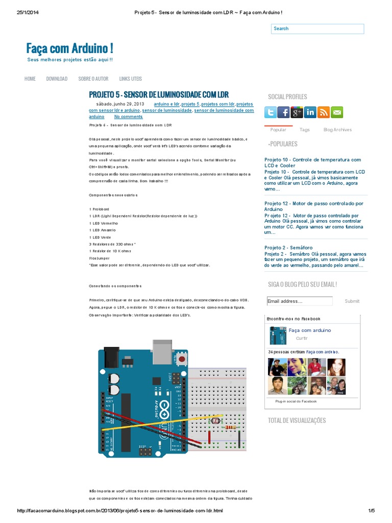 sbado, junho 29, 2013 arduino e ldr, projeto 5, projetos com ldr, projetos com sensor ldr e arduino, sensor de luminosidade, sensor de luminosidade com arduino No comments