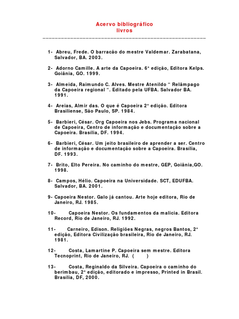 2- Adorno Camille. A arte da Capoeira. 6 edição, Editora Kelps.