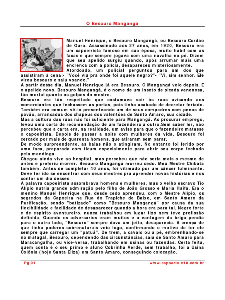 se e afirmou que o capoeirista estava morto. Besouro então se ergueu, mandou